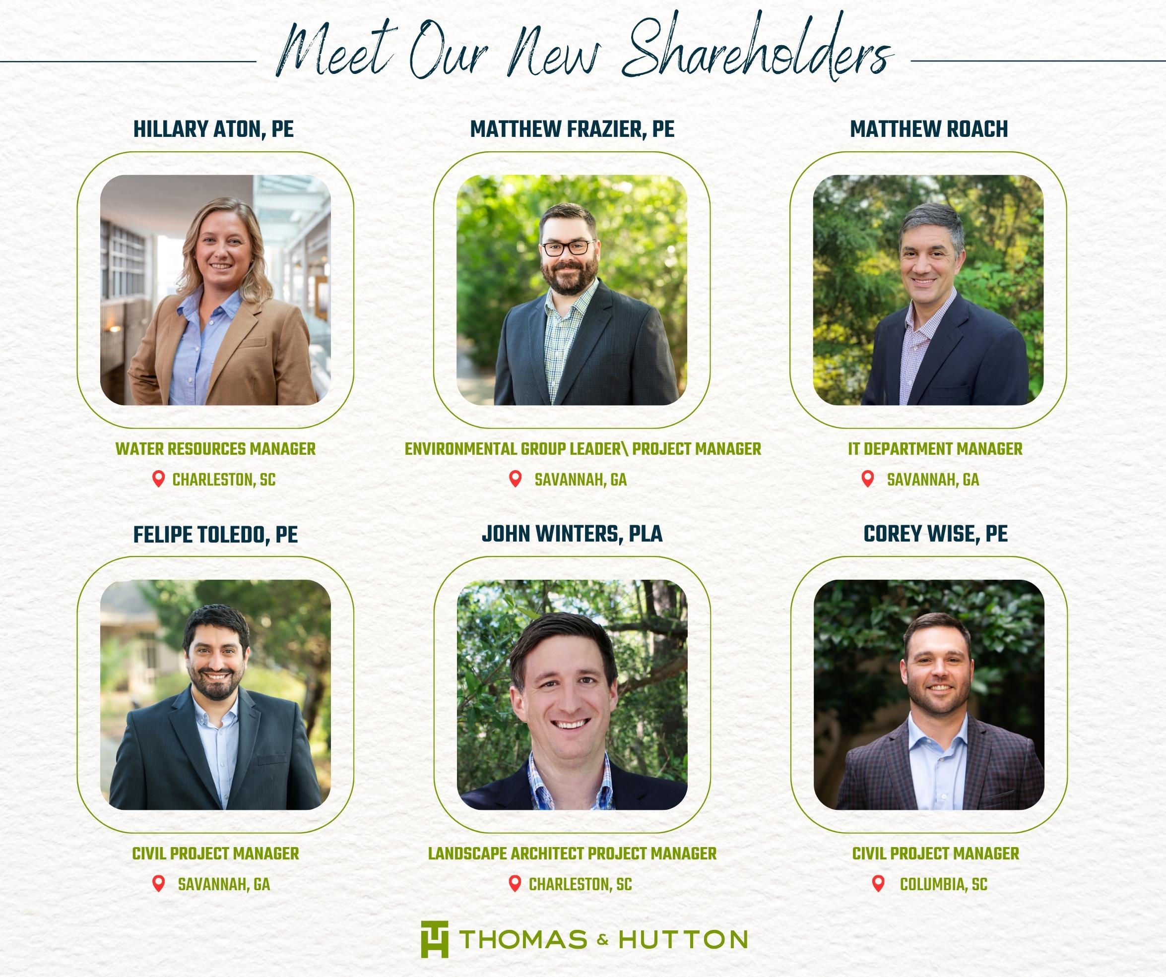 “We are thrilled to welcome these six outstanding professionals as shareholders,” said Ben Jones, COO of Thomas & Hutton. “Their leadership and expertise have been vital to our company’s success, and we are confident that they will continue to drive our firm forward in the years to come.”