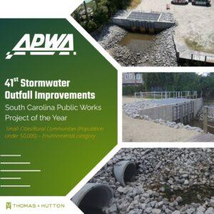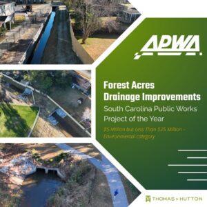 Two Thomas & Hutton projects were named Project of the Year from the South Carolina Chapter of the American Public Works Association (APWA). Our 41st Stormwater Outfall Improvements (Small Cities/Rural Communities – Population Under 50,000 – Environmental category) and our Forest Acres Drainage Improvements ($5 Million but Less Than $25 Million – Environmental category) were celebrated for advancing community resilience and sustainable infrastructure across South Carolina. These projects showcase our team’s commitment to delivering innovative stormwater solutions that protect neighborhoods, enhance safety, and address the challenges of flooding and rising sea levels. We are proud to partner with the City of Isle of Palms, the City of Charleston, Bastion Group, LLC (Isle of Palms), Gulf Stream Construction (Forest Acres), and all stakeholders who share our dedication to creating stronger, more resilient communities.