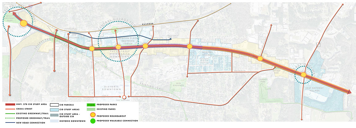 A complete street approach to rethinking what US Highway 278 is and should be. The new “Complete” 278 will be focused on creating a pedestrian friendly, aesthetically pleasing environment that will be a destination in the City of Covington and not a route through it.